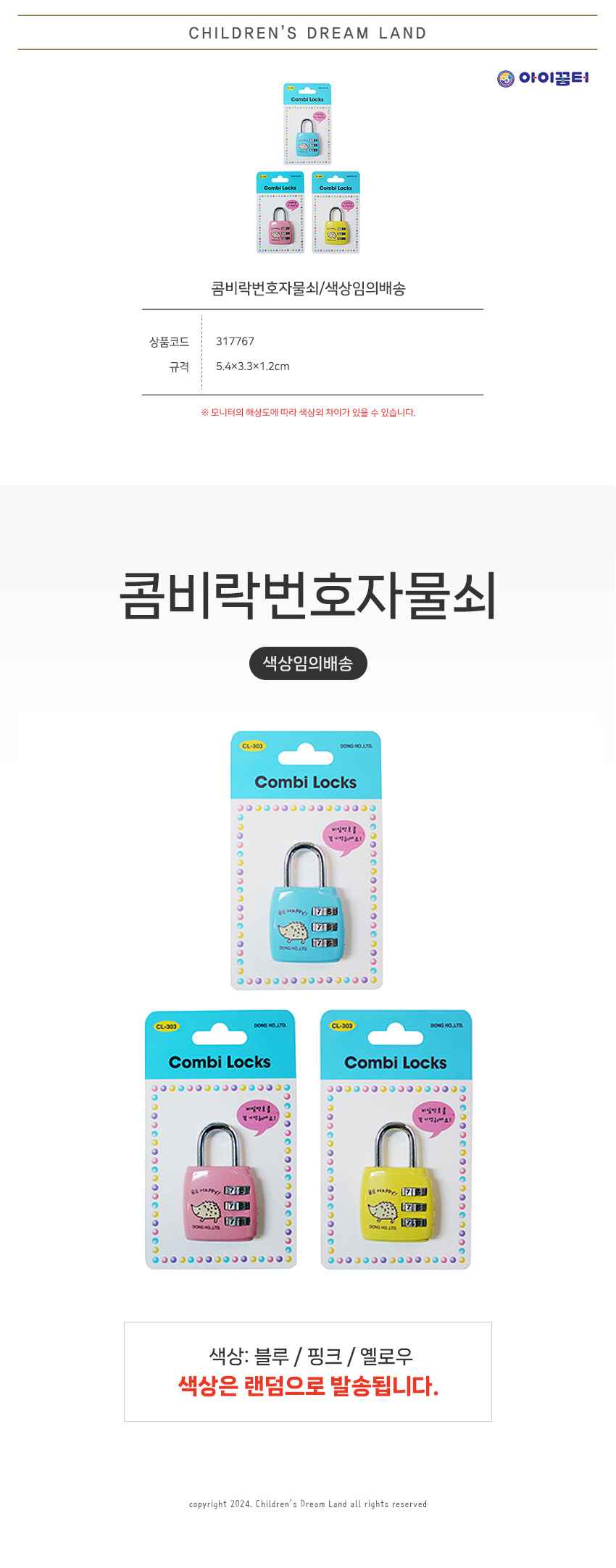 콤비락번호자물쇠/CL303/색상임의배송