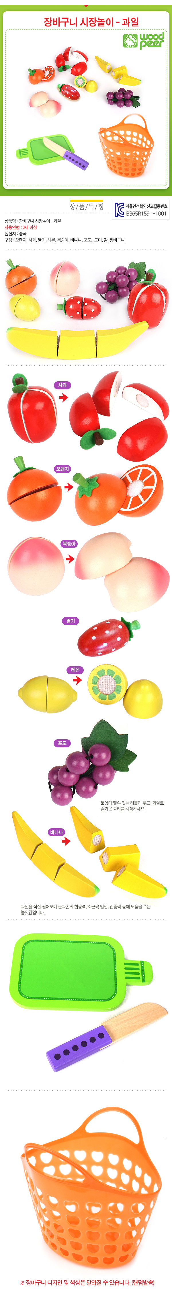 구성:오렌지,사과,딸기,레몬,복숭아,바나나,포도,도마,칼,장바구니(색상랜덤)