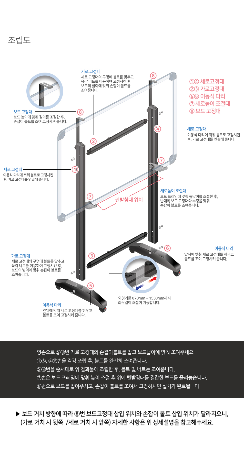 이동식화이트보드/단면/일반/120x90cm/상하좌우스탠드포함