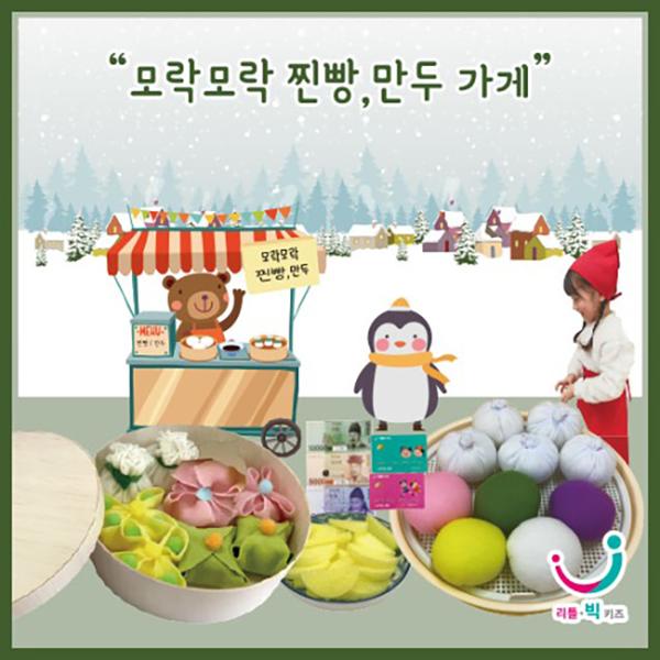 무대배경1,찐빵8,왕만두8,찐만두8,만두용기1,찜기2,집게2,앞치마2,머리수건2,모형지폐,신용카드,단무지