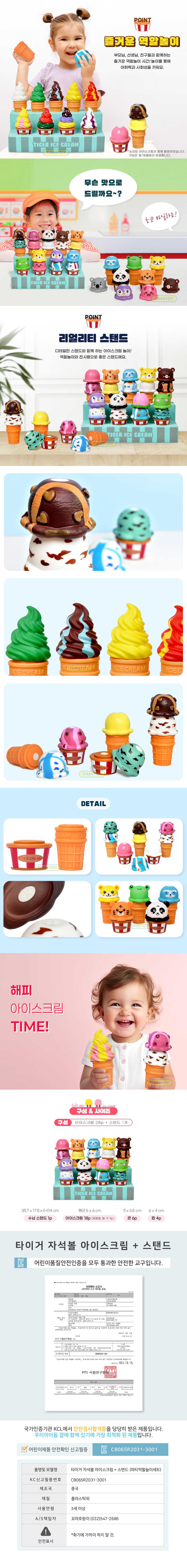 아이스크림(평균 6×6cm) 18pcs, 콘(5×6.5cm) 6pcs, 컵(6×4cm) 4pcs, 수납스탠드(35.7×17.5×14cm) 1p