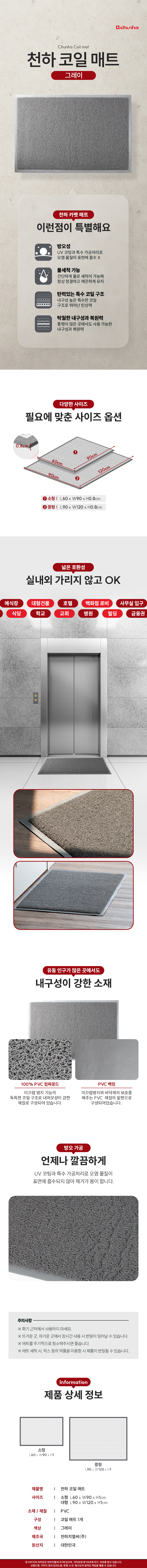 천하코일매트/그레이/중/90cm*120cm/CSW6191