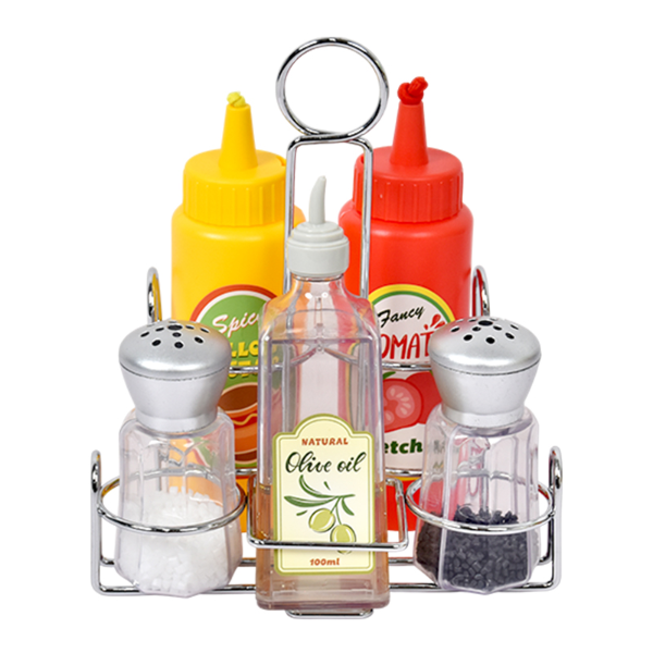거치대:16.1×11.6×18.9cm,케찹,머스타드:지름4.7×15.5cm,소금,후추:지름4.1×9.3cm