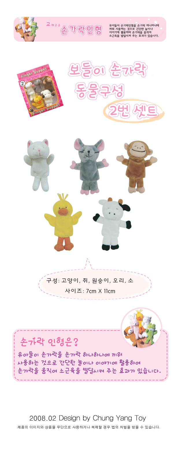 손가락인형/보들이동물구성2/고양이외4종
