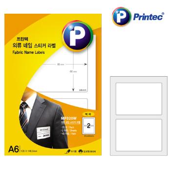 한정수량/의류네임스티커/MF020W/백색/2분할/프린텍