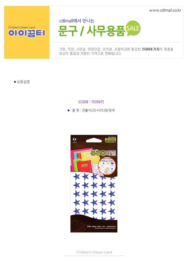견출지/홀로그램/별/20-HR353/7매/청색
