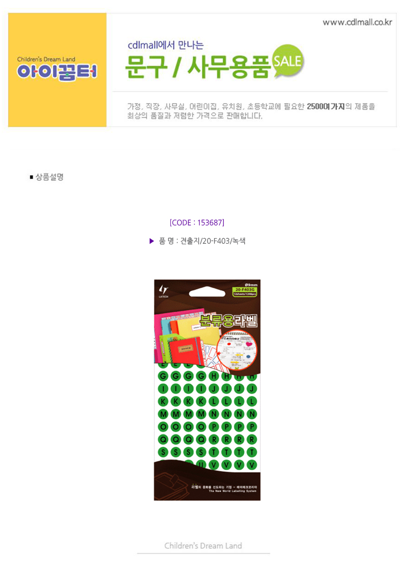 견출지/알파벳/20-403/13매/형광녹색
