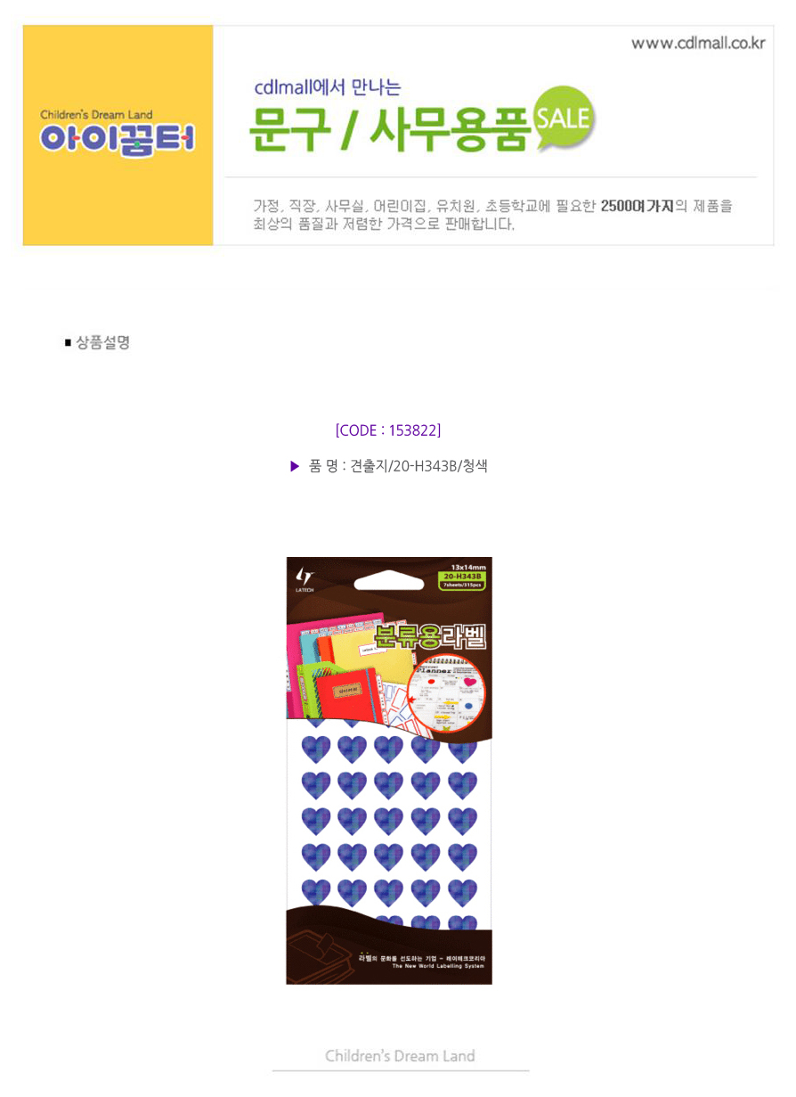 견출지/홀로그램/7매/하트/20-HR343/청색