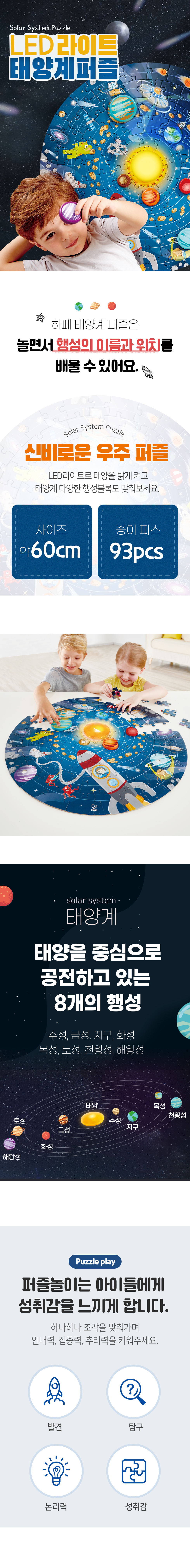 57.5×57.5×0.2cm,구성:퍼즐 93개, 행성블럭 8개,태양 1개, 양면포스터 1개,