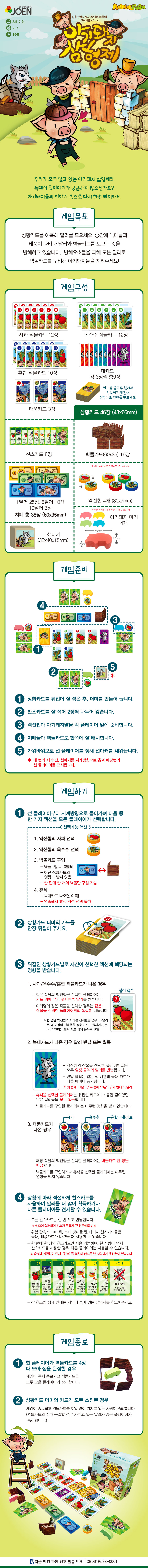 액션칩 4개, 수확카드, 늑대카드, 지폐, 돼지마커, 선마커