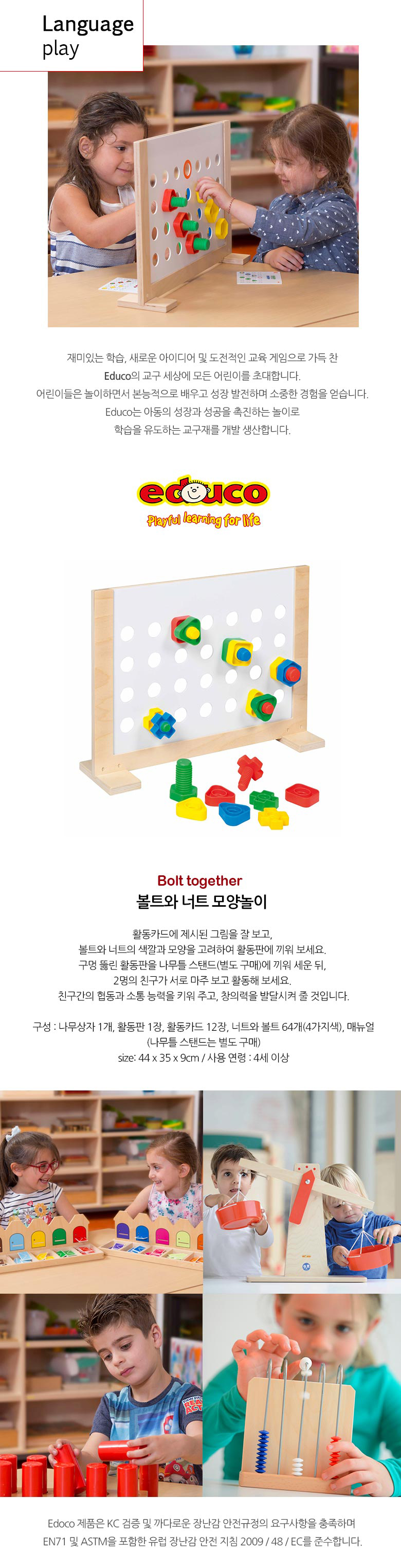 32×34×6cm,구성:활동카드 12개, 너트와 볼트 각 64개 (4색), 가이드북, 보관함