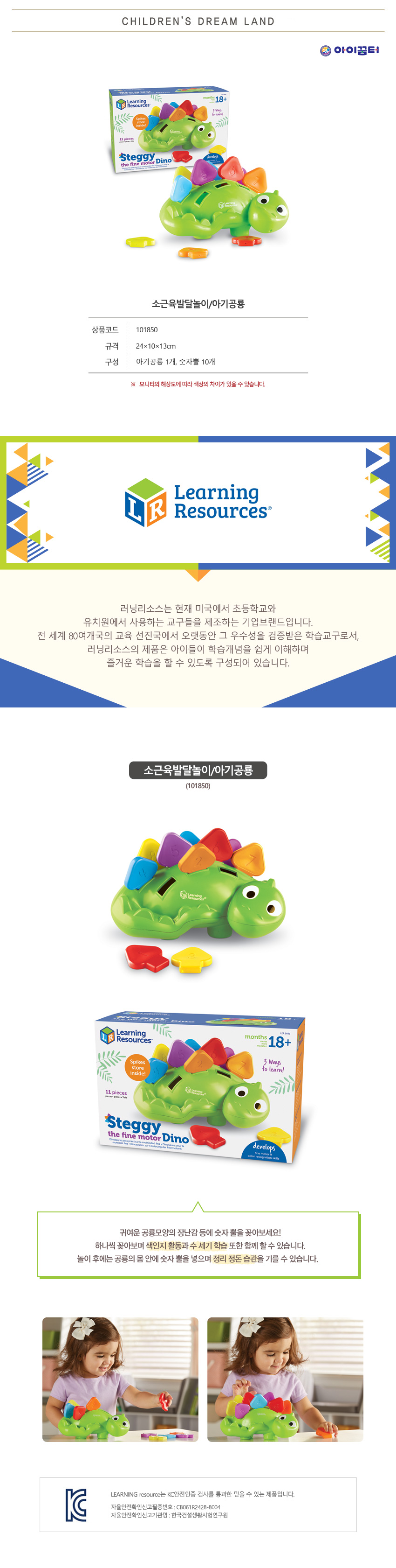 아기공룡 1개, 숫자뿔 10개, 24×10×13cm