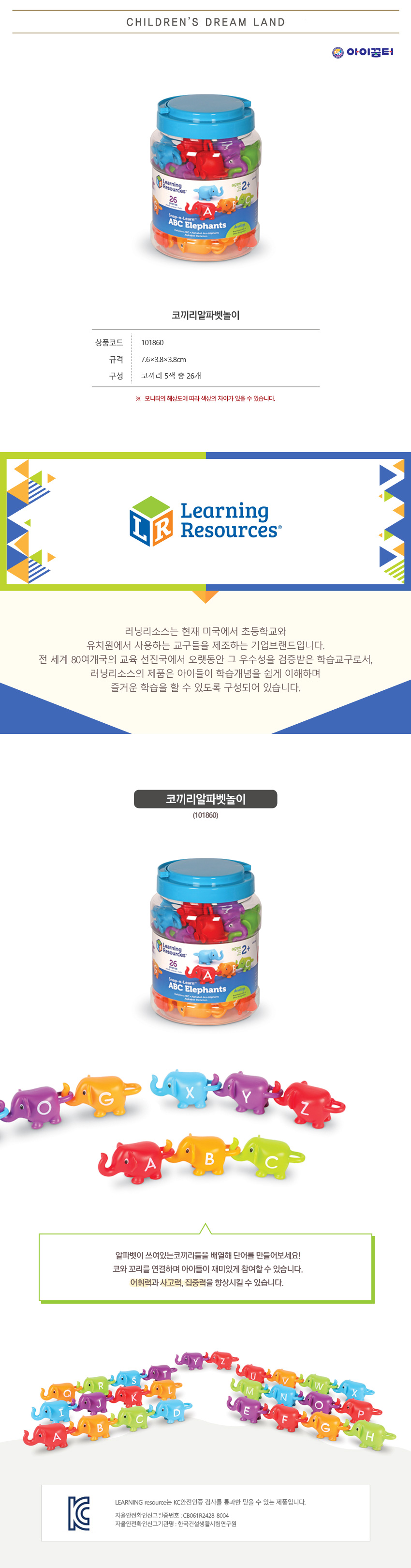 5색 코끼리 총 26개, 7.6×3.8×3.8cm