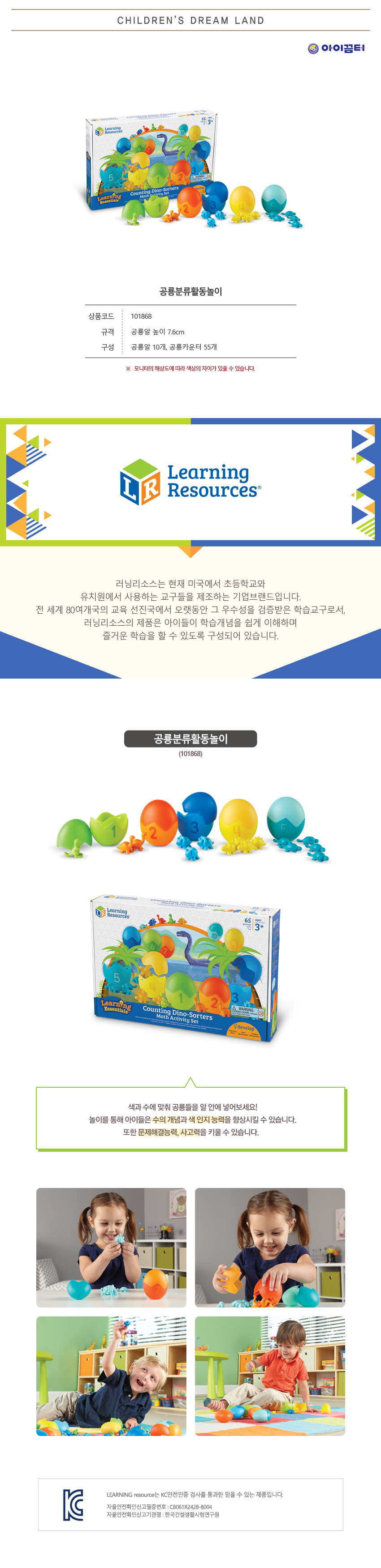 공룡알 10개, 공룡카운터 55개, 공룡알 높이 7.6cm