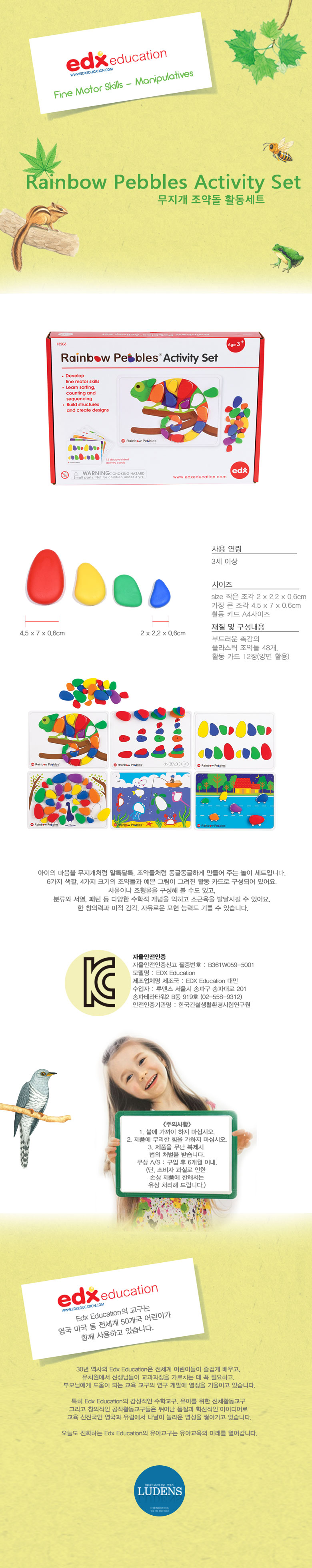 작은 조각 2×2.2×0.6cm,큰조각 4.5×7×0.6cm/조약돌 48개, 양면활동카드 12장