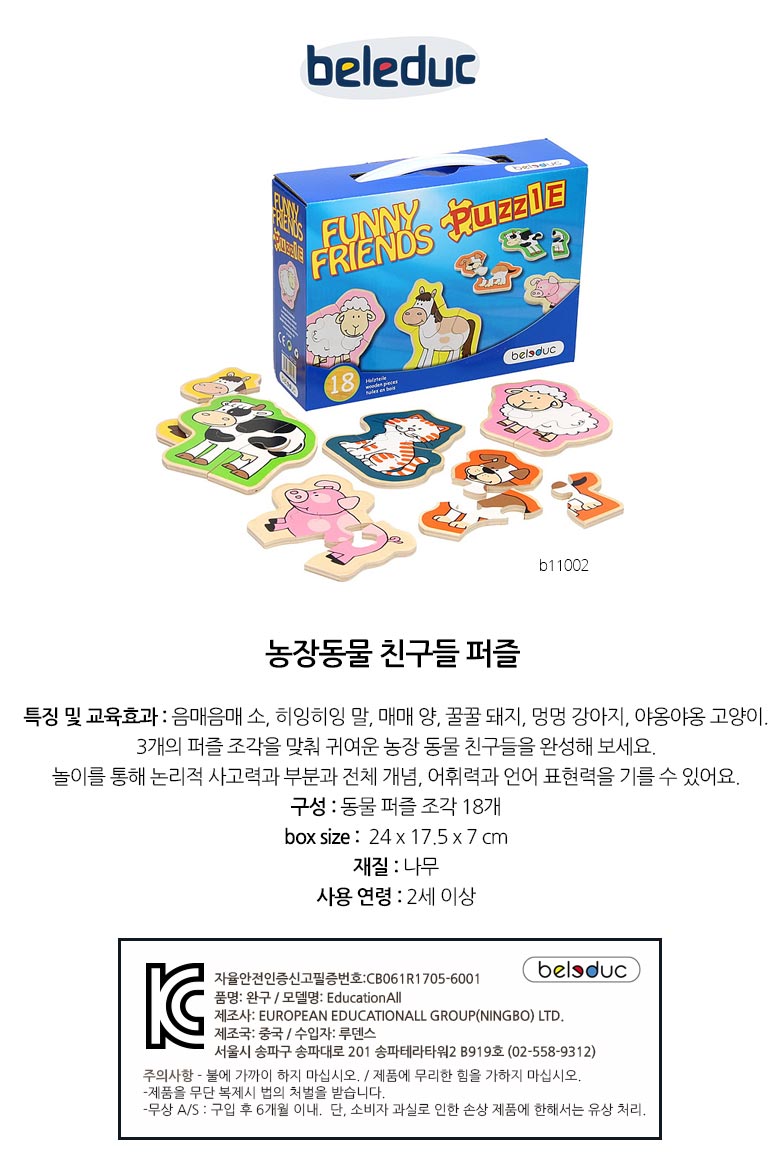 박스24×17.5×7cm, 동물퍼즐조각18개