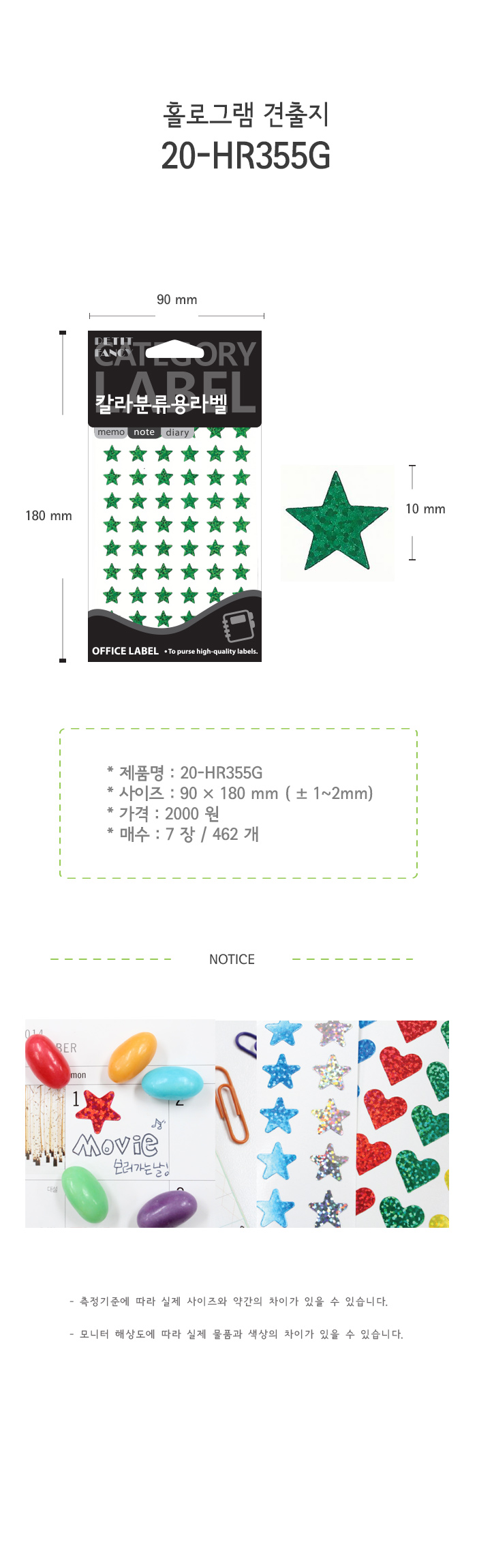 견출지/홀로그램/별/20-HR355/7매/녹색