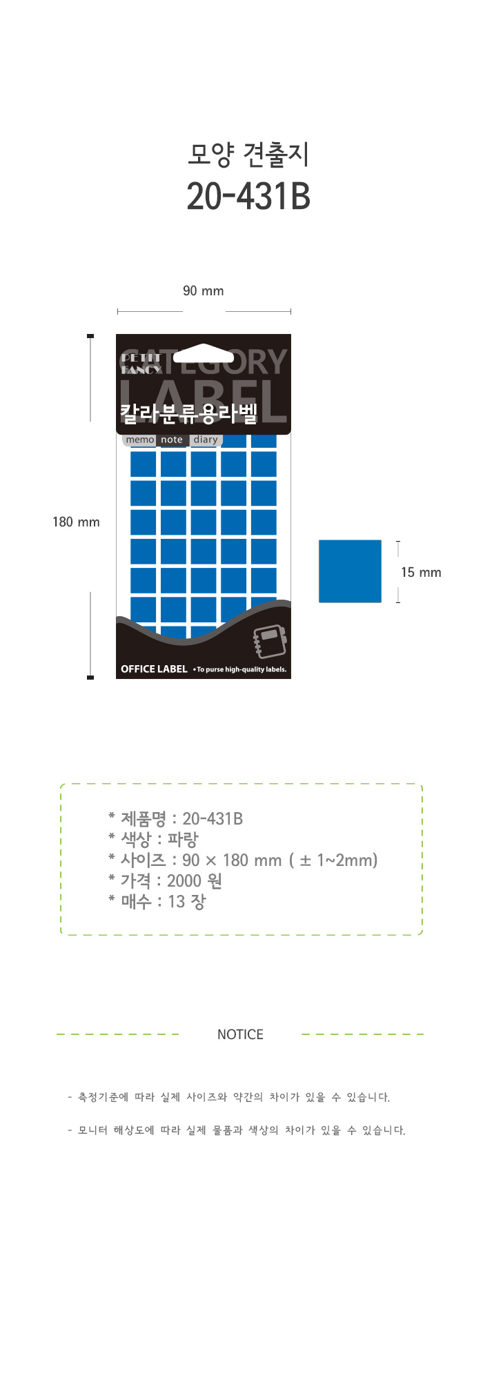 견출지/20-431/13매/청색
