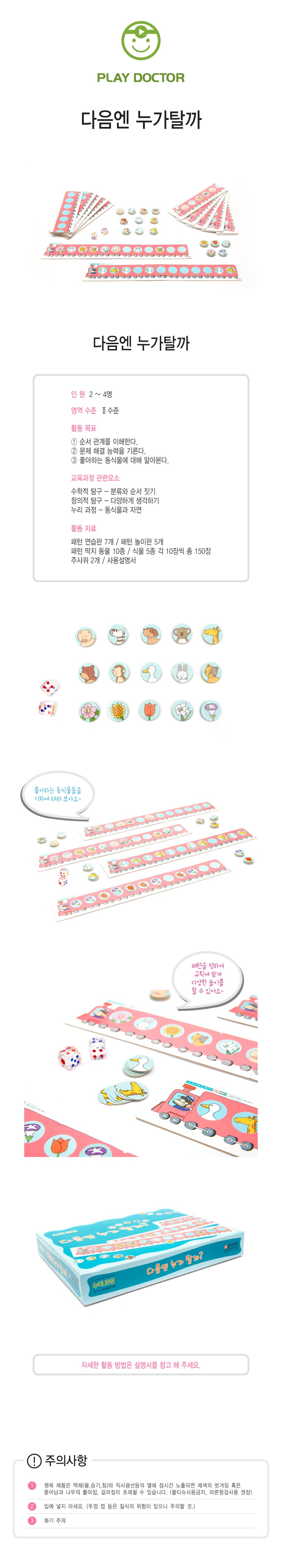 41×31×6cm,패턴연습판 7개,패턴 놀이판 5개,패턴 딱지 공물 10종,식물 5종 각 10장씩 총 150장,주사위 2개,사용설명서