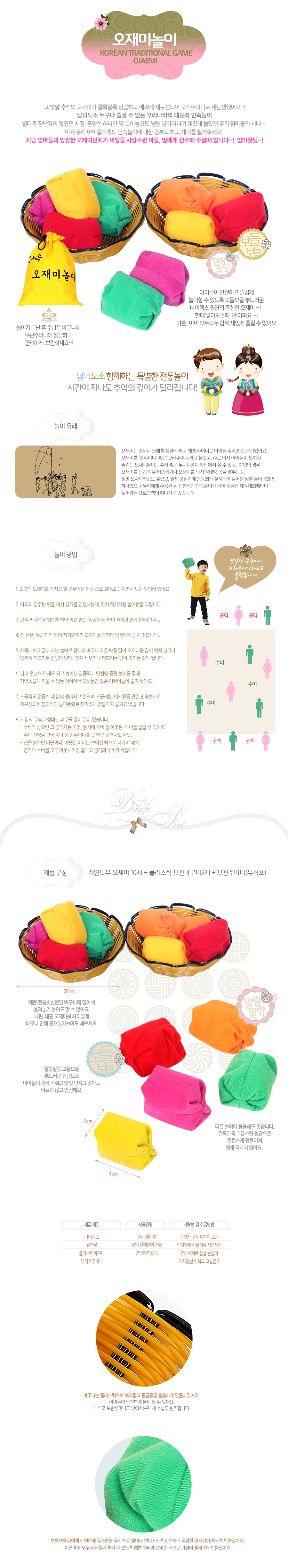 오재미(9×7cm) 5색 10개,바구니 2개