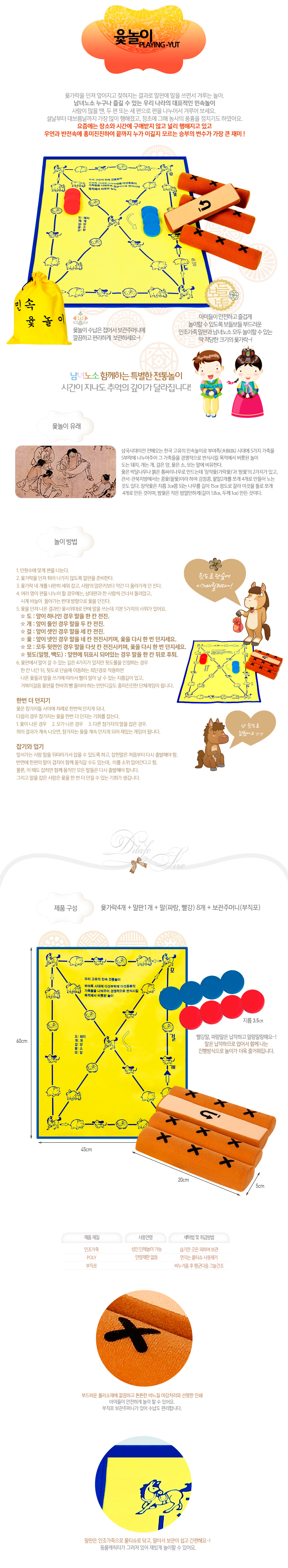 윷4개(20×5cm) 윷동8개,말판(60×45cm) 1장