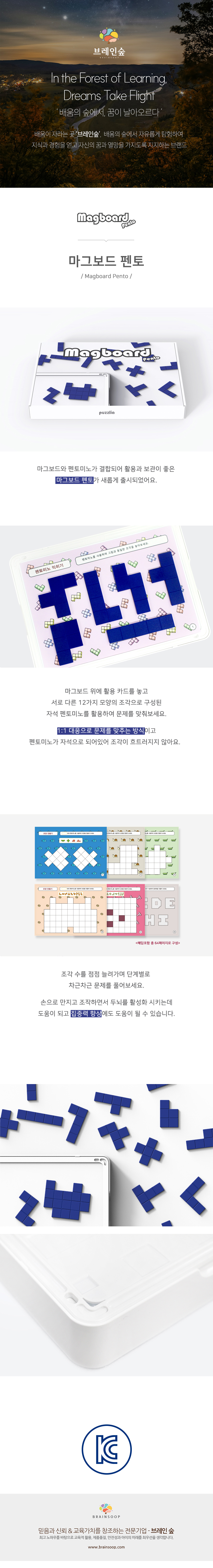 마그보드33.4×245.×24cm,펜토미노2.5×2.5×1(cm),마그보드,자석펜토미노12개,활용카드,소책자
